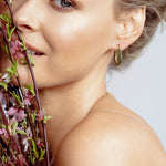 Gold huggies with multiple reflective pave set emerald coloured gems. Mysterious, beautiful and durable. Set in permanent 18k gold coating. Made to wear day and night without ever tarnishing or fading. Allergy Safe and Nickel free. Available in Emerald, Snow and Blush.