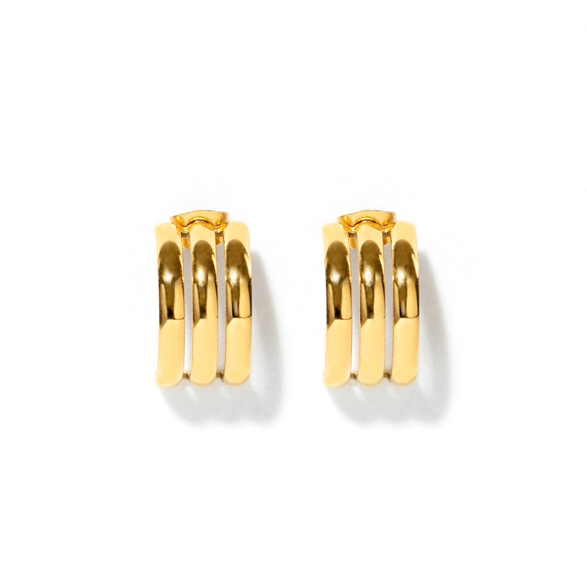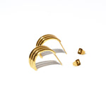 Three seperate, yet identical curved bars make this earring just a little over a cm in width and 2cm's from top to bottom. Secure stud push back fastener offers max comfort. Incredibly light, yet heavy in the style department.