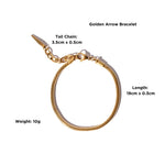 The Golden Arrow itself is 1.5cmm in length and tapers from 3mm wide down to 1mm wide at it's pointed end. Total durability and comfort for all day wear.