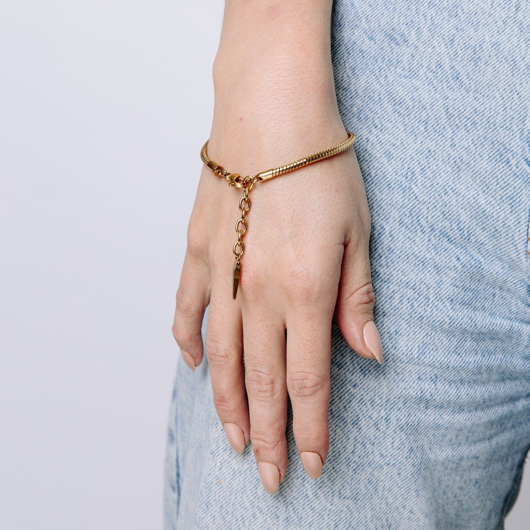 Edgy and classy all in one. A stunning hand crafted arrow drips from the quality polished bracelet exuding style.