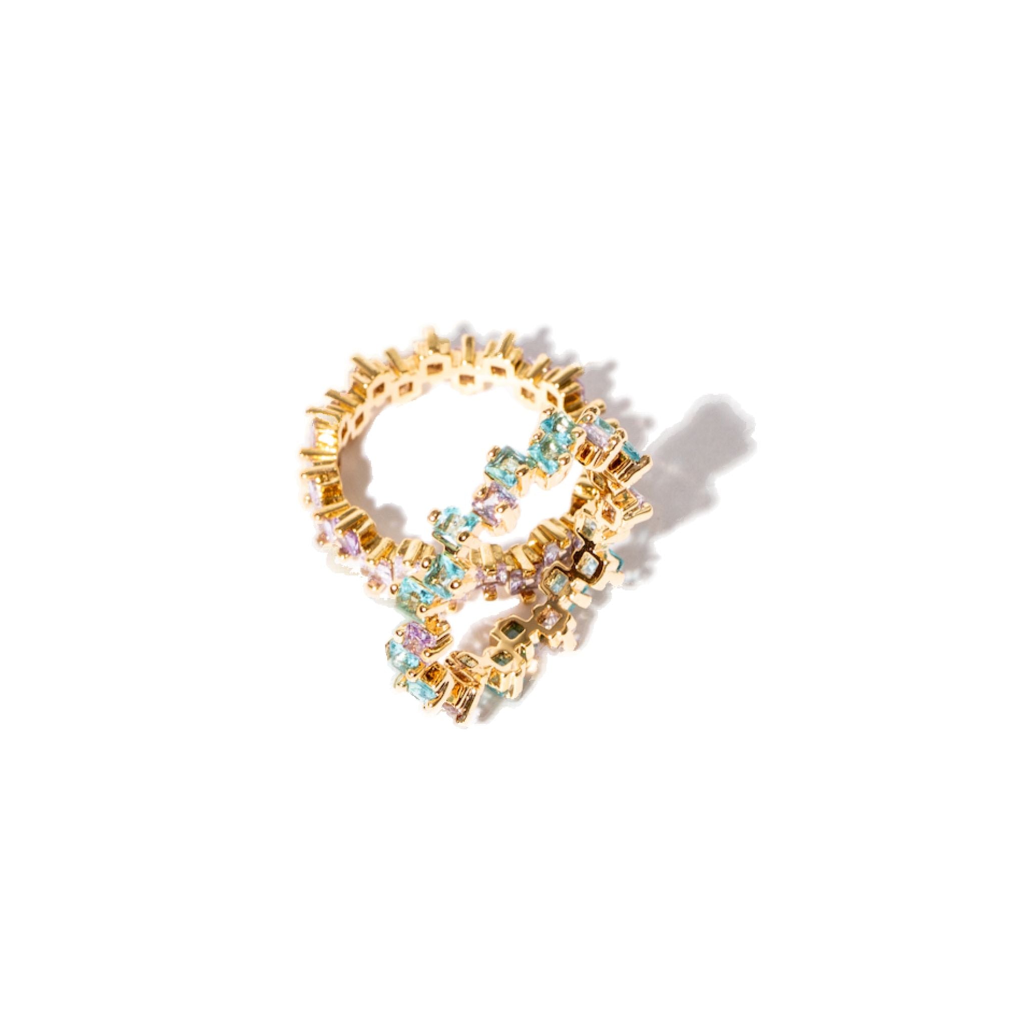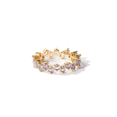 Moissanites are lab grown gems that replicate the exact sparkle and durability of diamonds and coloured gems found in nature. This extremely pretty ring offers over 20 gems set in waterproof permanent 18K gold coating that won't ever fade or tarnish.